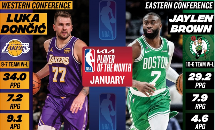 吉祥坊ios – 经典黄绿配色 ~ 月度最佳球员:卢卡·东契奇场均34+7+9,杰伦·布朗场均29+8+5